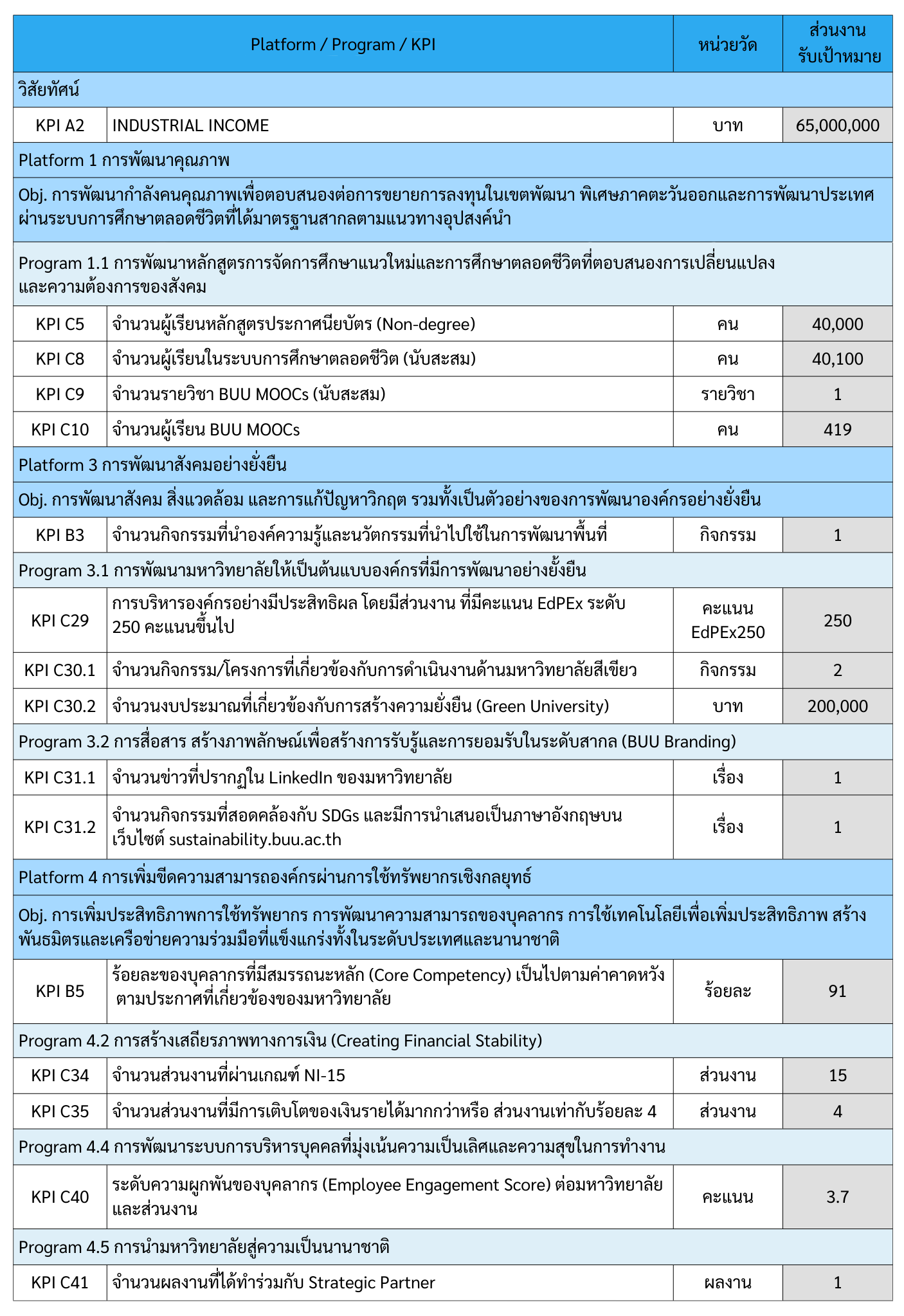 เป้าหมายตัวชี้วัด ตามแผนยุทธศาสตร์ มหาวิทยาลัยบูรพา ประจำปีงบประมาณ พ.ศ. 2569