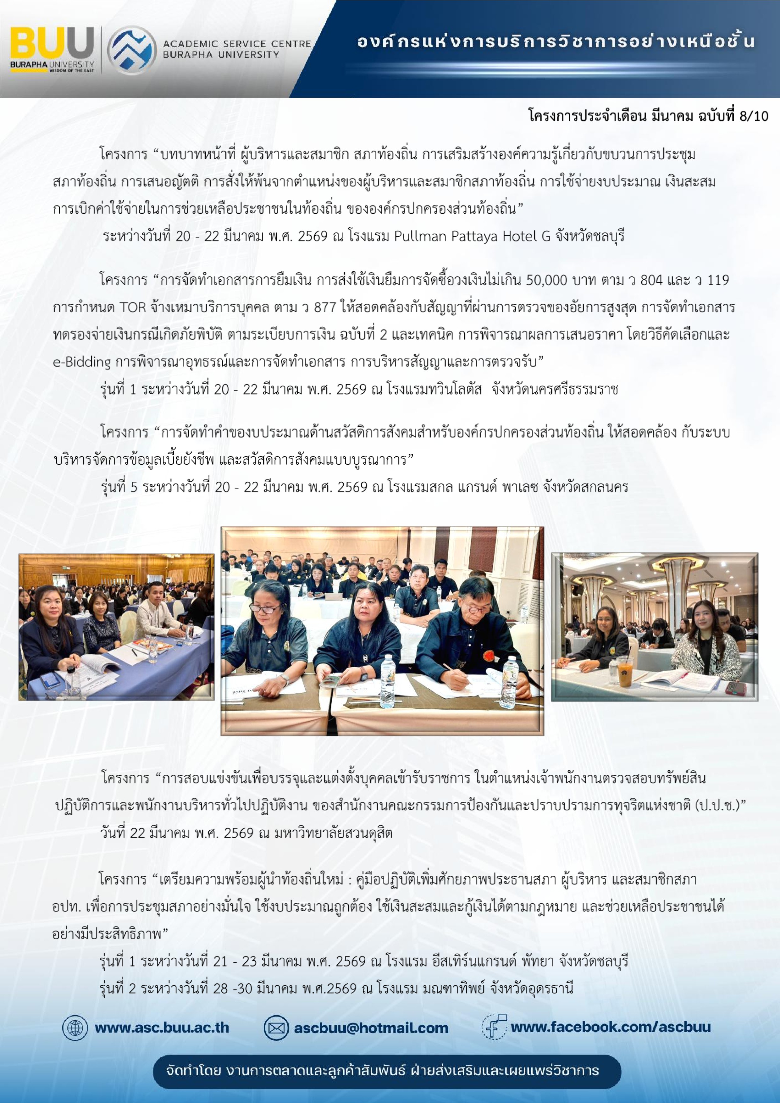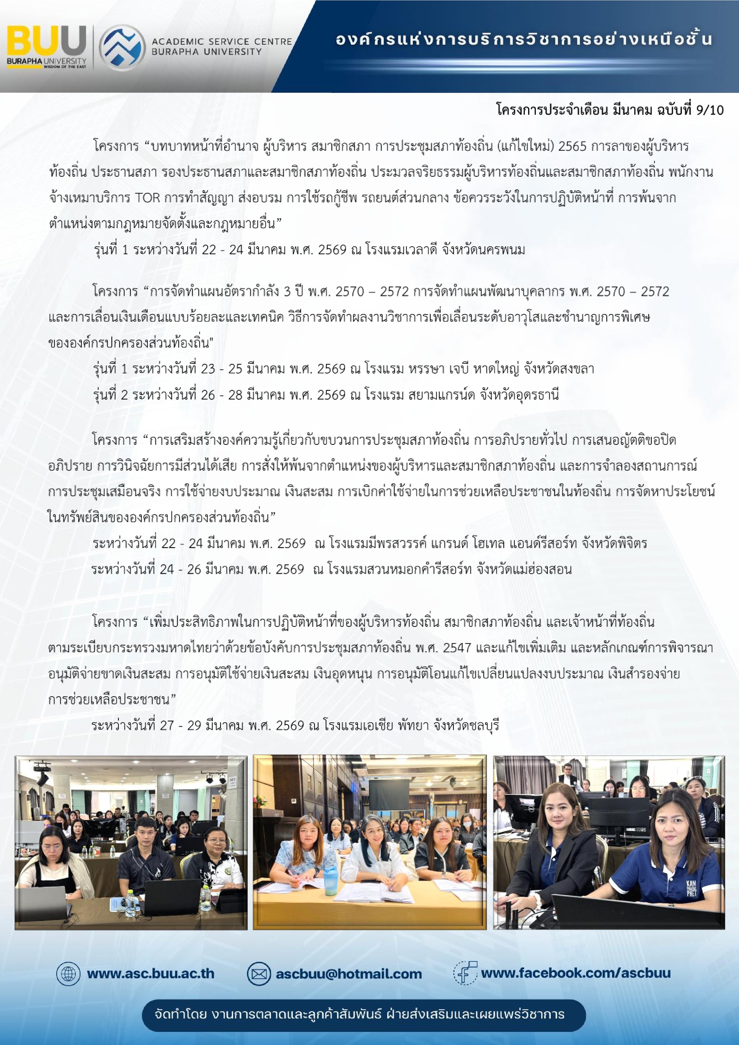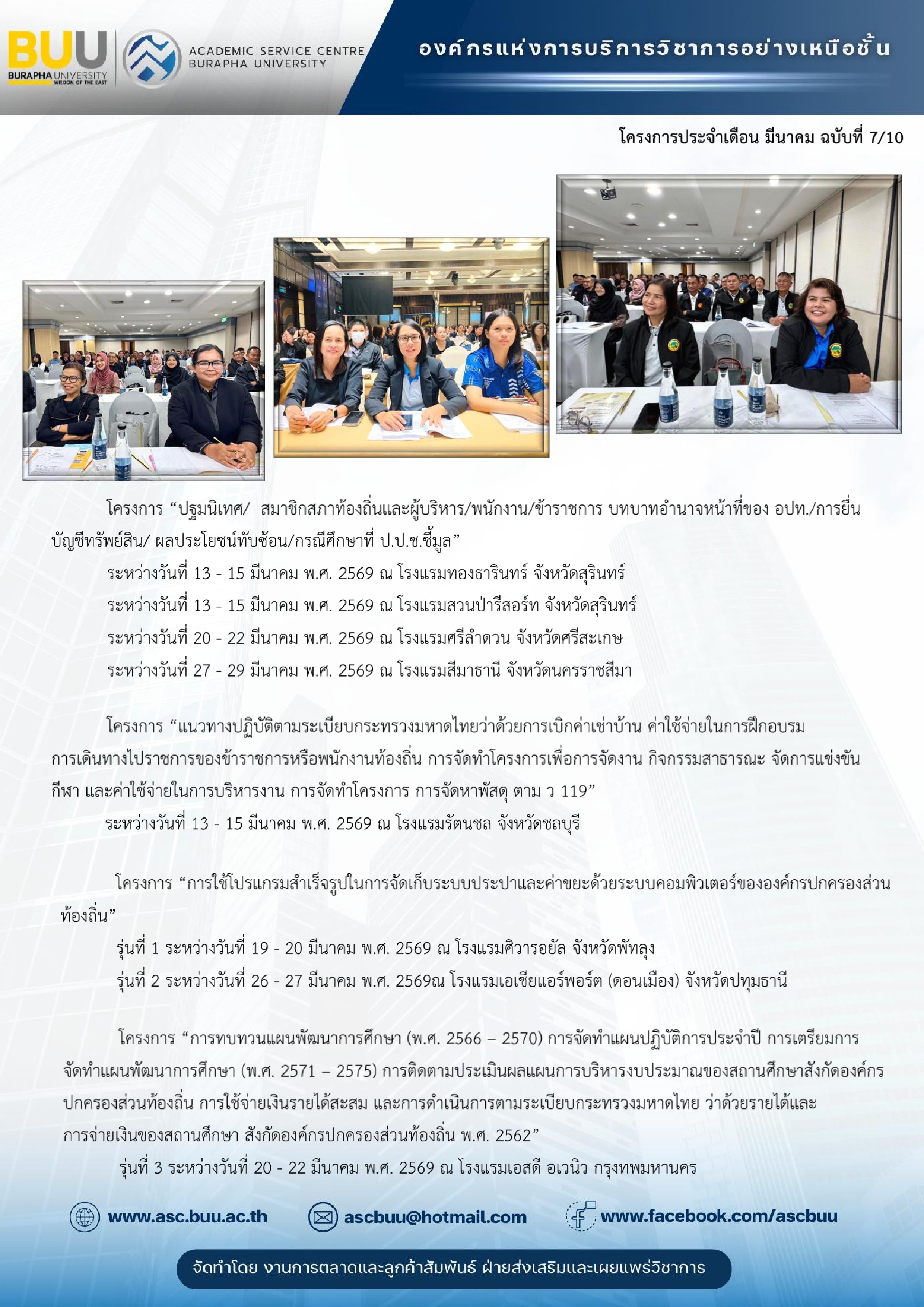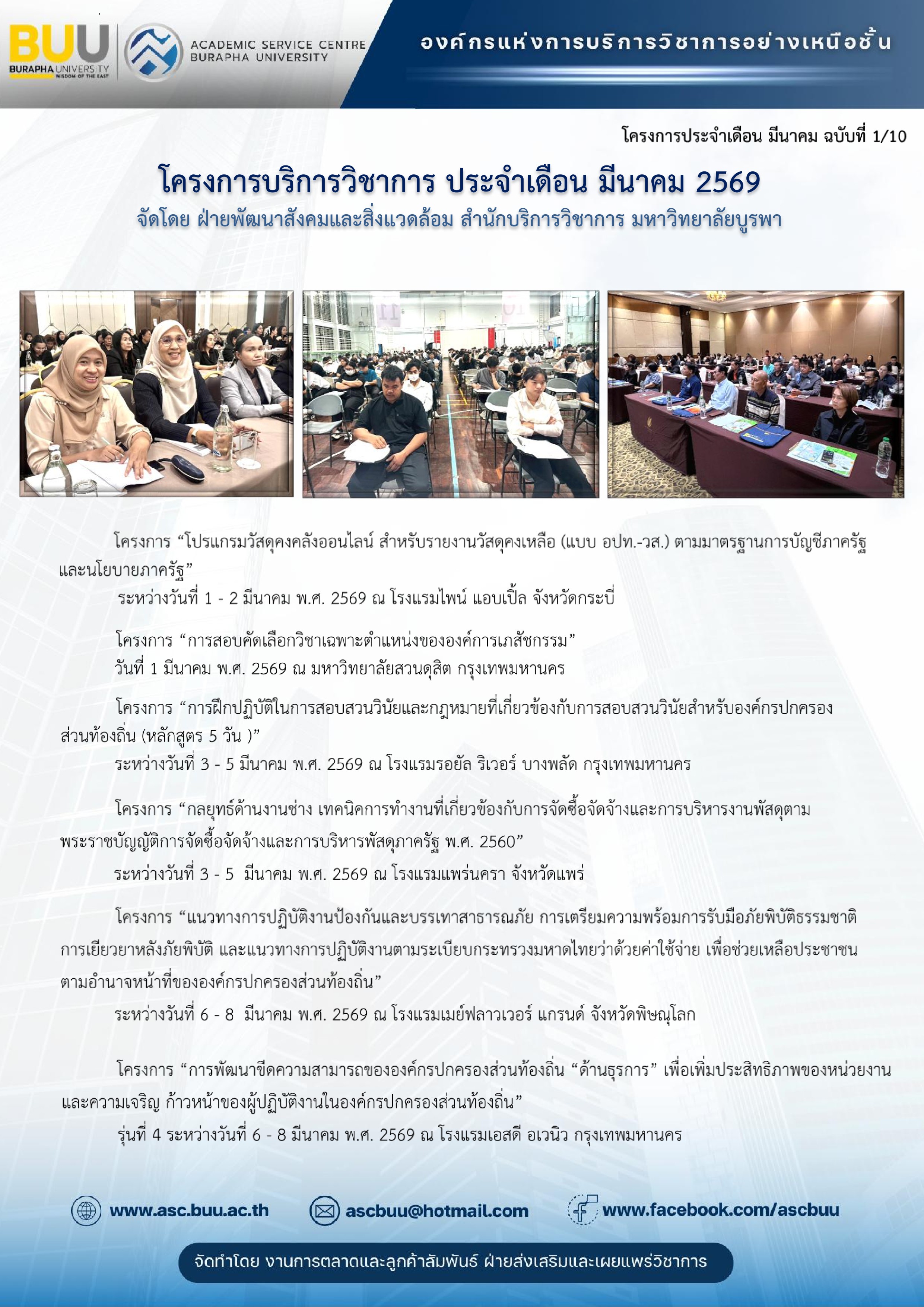 โครงการบริการวิชาการ ประจำเดือน มีนาคม 2569 จัดโดย ฝ่ายพัฒนาสังคมและสิ่งแวดล้อม สำนักบริการวิชาการ มหาวิทยาลัยบูรพา