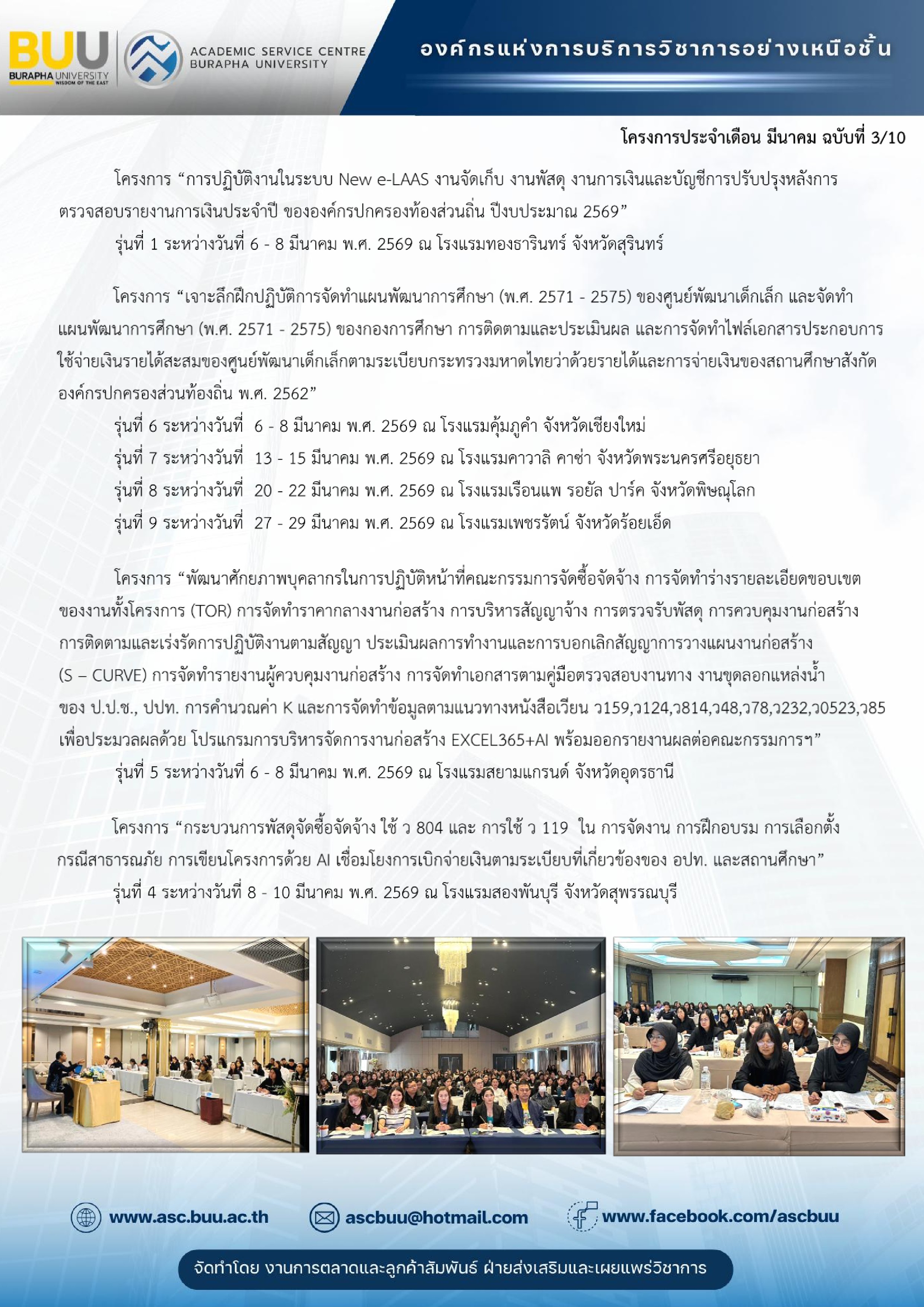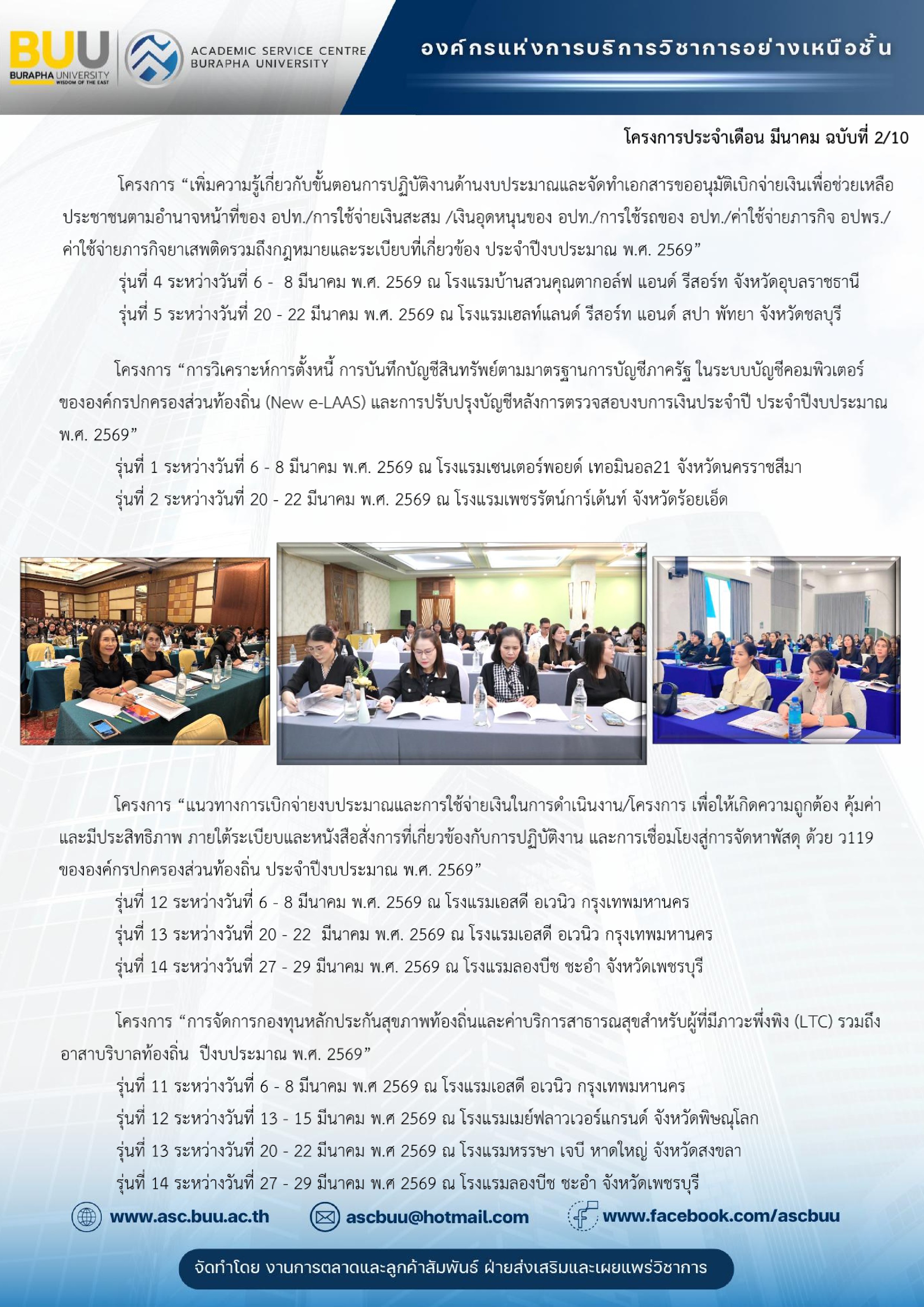 โครงการบริการวิชาการ ประจำเดือน มีนาคม 2569 จัดโดย ฝ่ายฝึกอบรมและที่ปรึกษา สำนักบริการวิชาการ มหาวิทยาลัยบูรพา