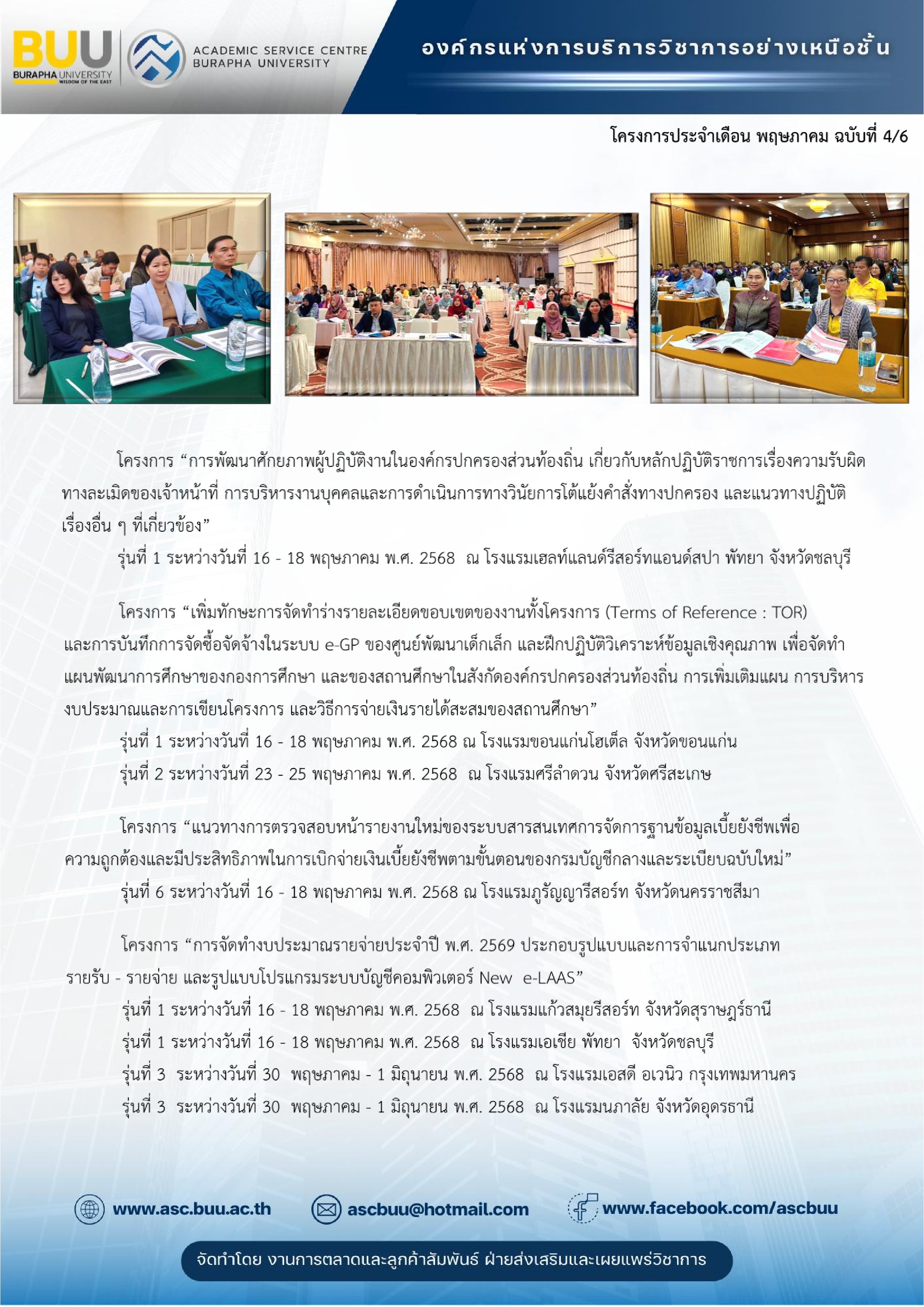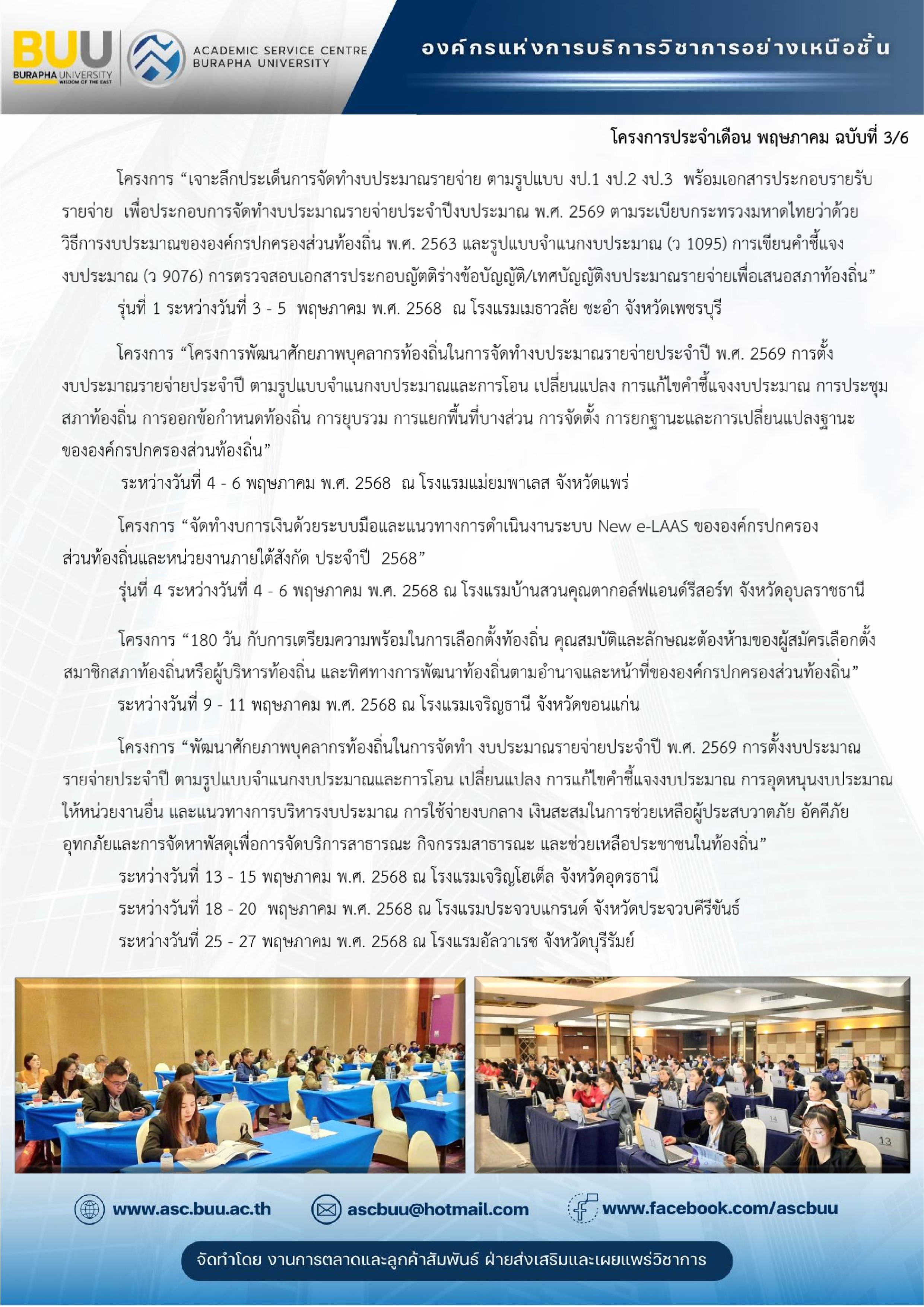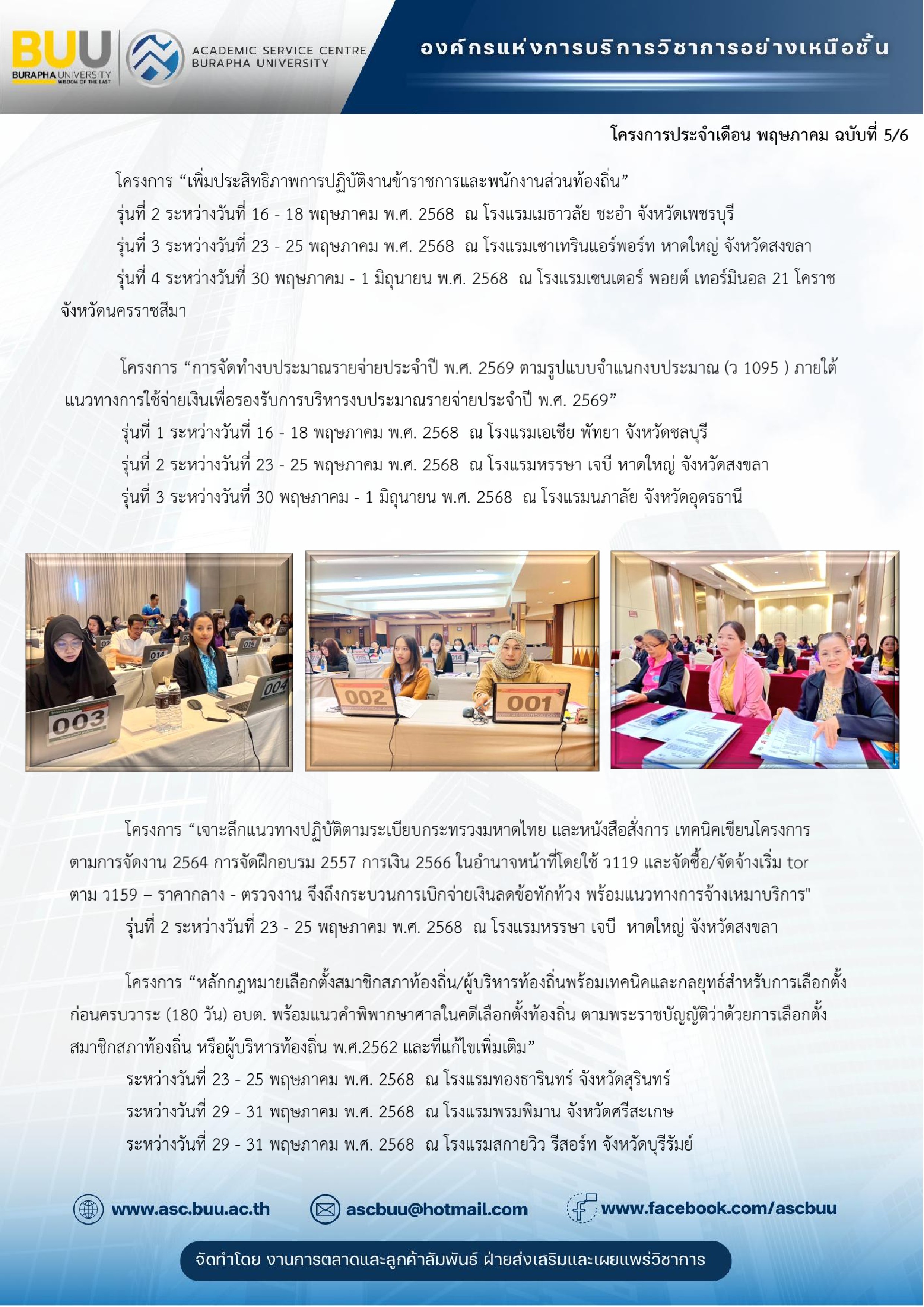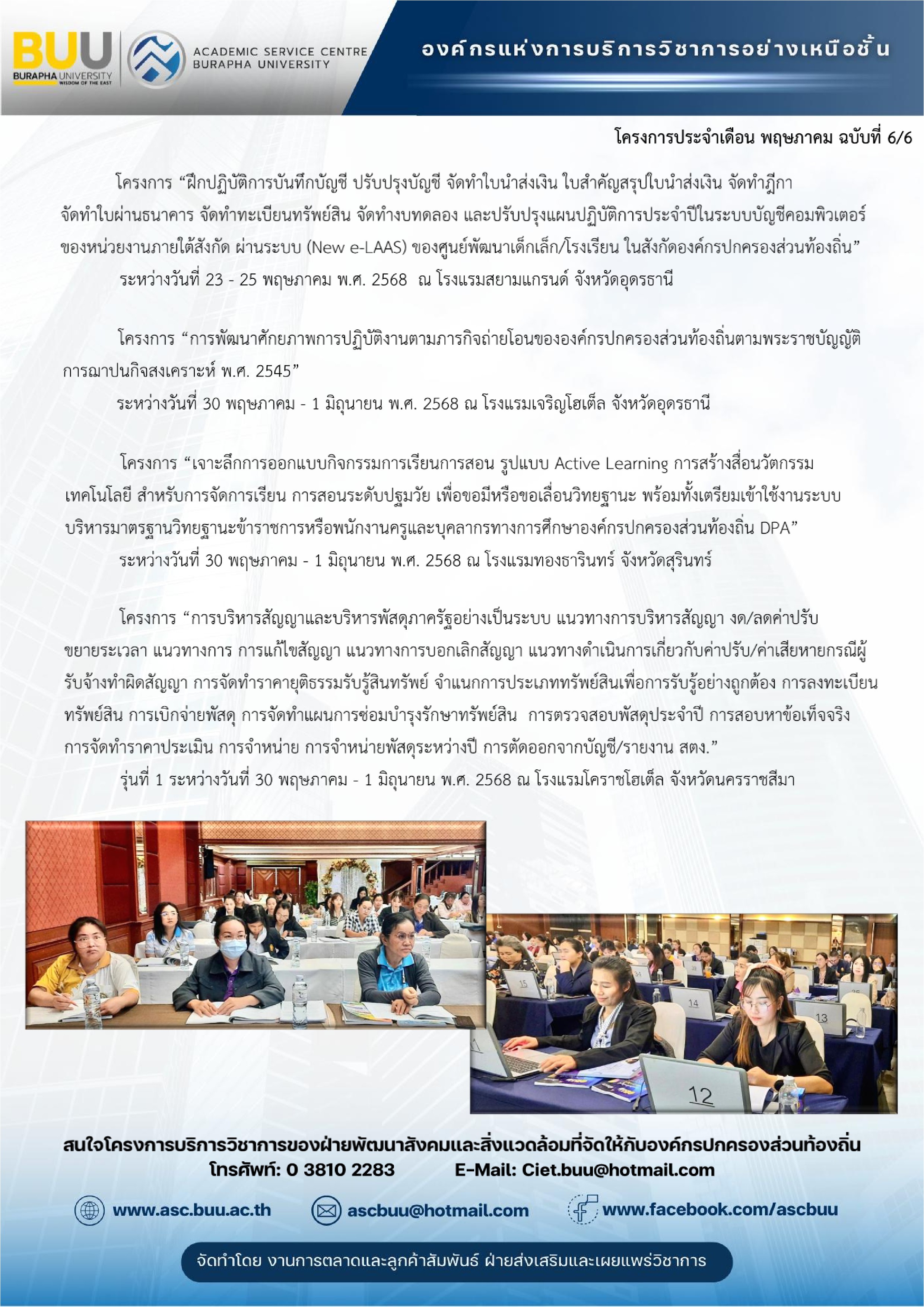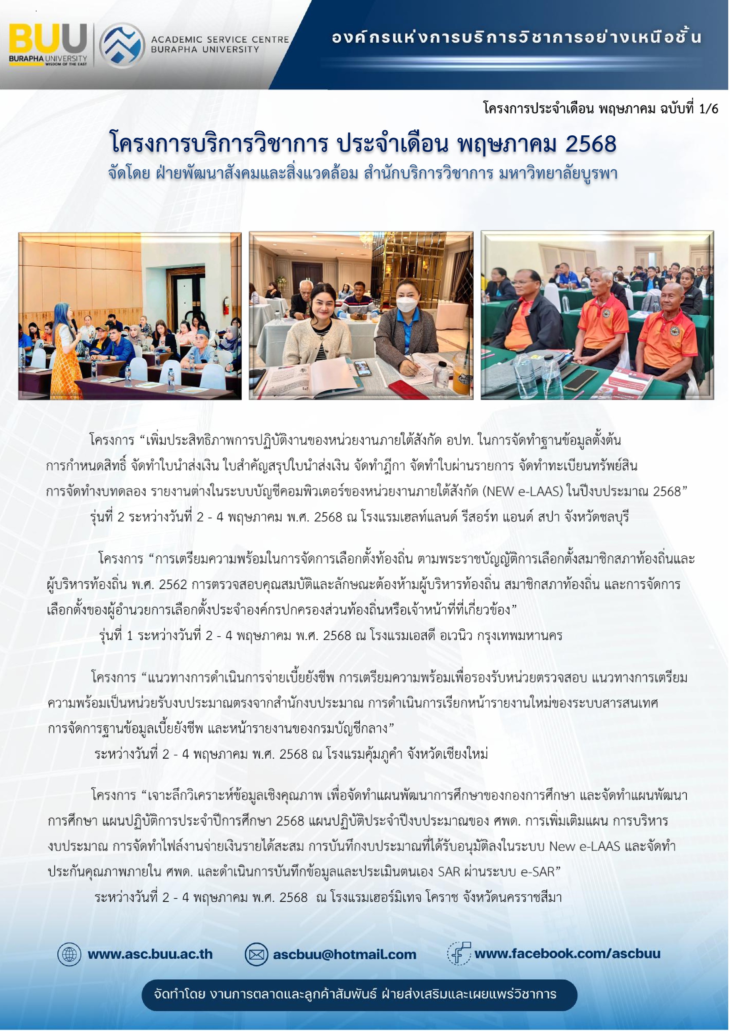 โครงการบริการวิชาการ ประจำเดือน พฤษภาคม 2568 จัดโดย ฝ่ายพัฒนาสังคมและสิ่งแวดล้อม สำนักบริการวิชาการ มหาวิทยาลัยบูรพา