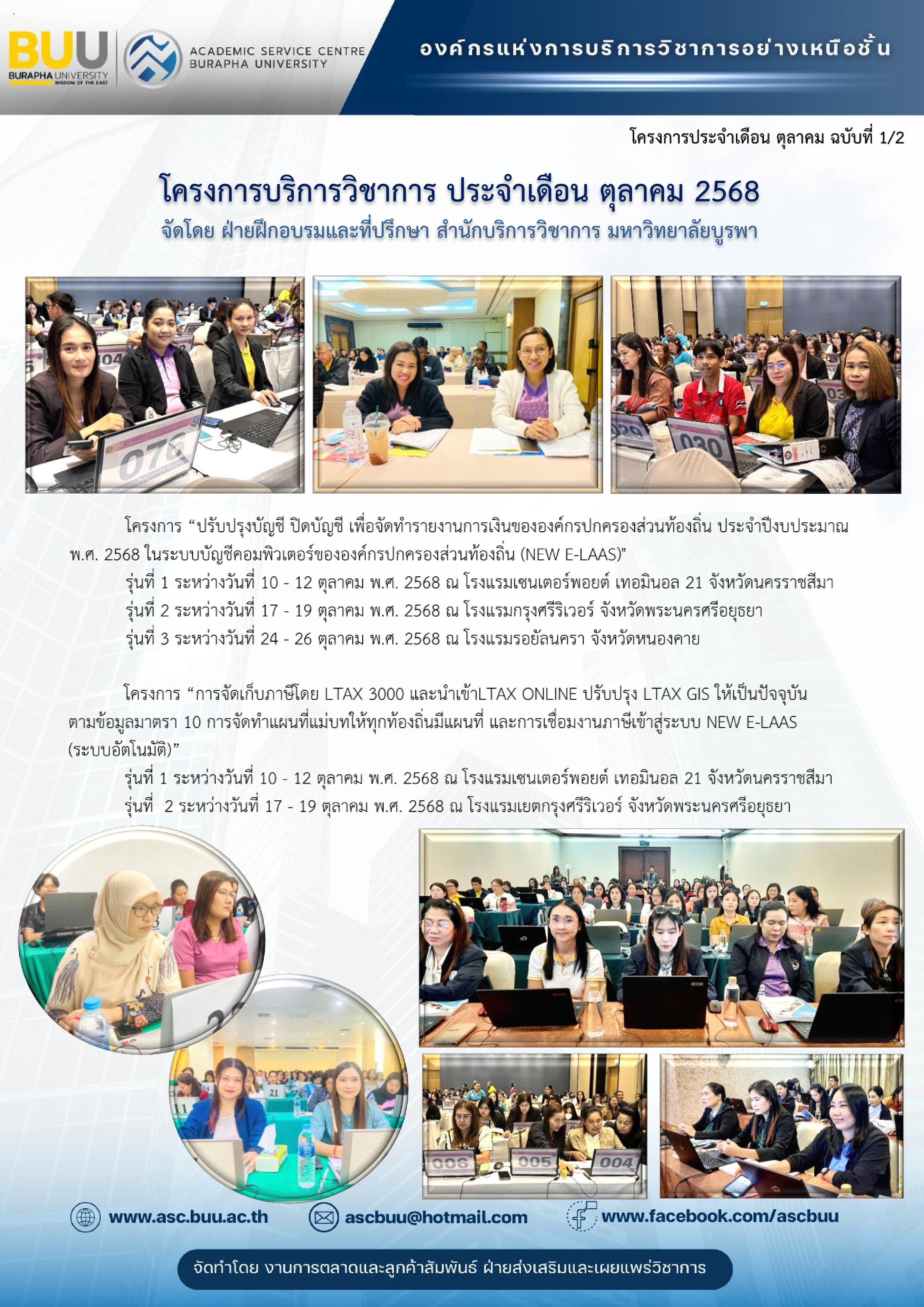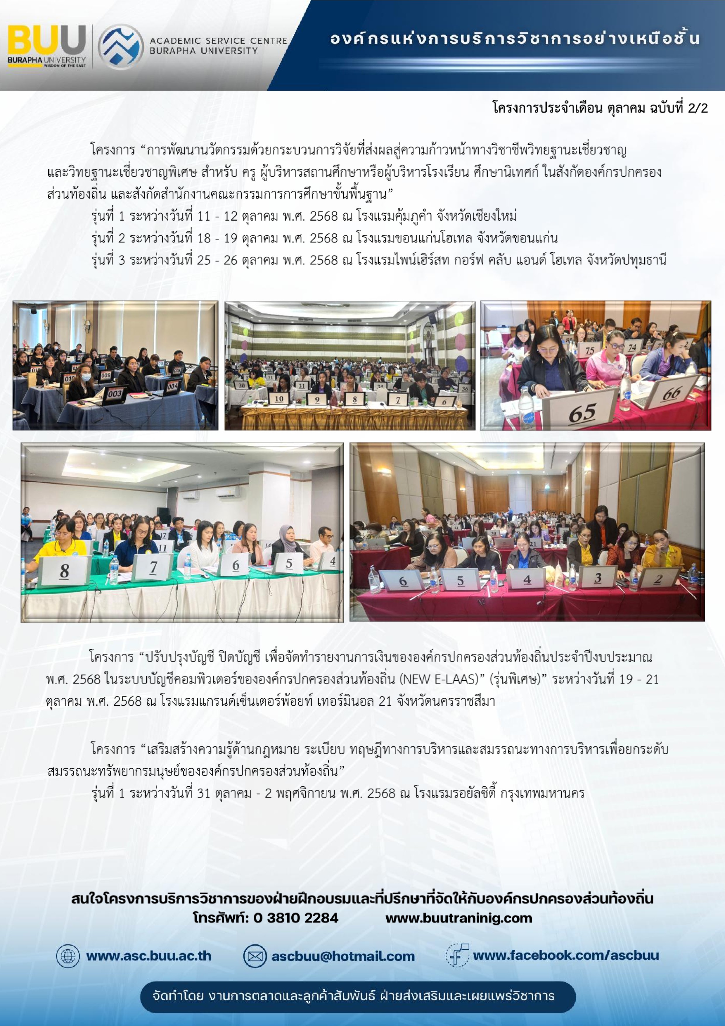 โครงการบริการวิชาการ ประจำเดือน ตุลาคม 2568 จัดโดย ฝ่ายฝึกอบรมและที่ปรึกษา สำนักบริการวิชาการ มหาวิทยาลัยบูรพา