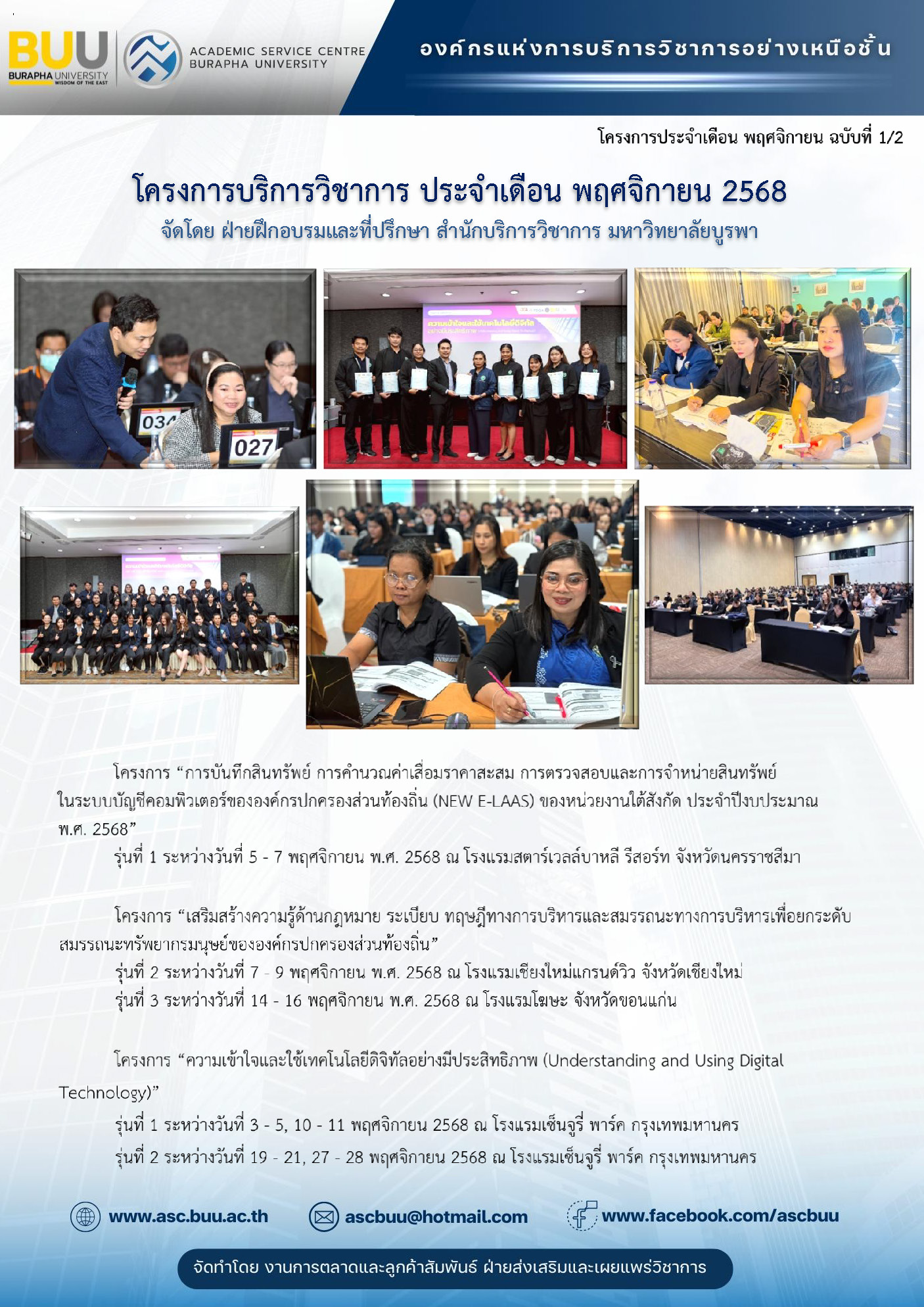 โครงการบริการวิชาการ ประจำเดือน พฤศจิกายน 2568 จัดโดย ฝ่ายฝึกอบรมและที่ปรึกษา สำนักบริการวิชาการ มหาวิทยาลัยบูรพา