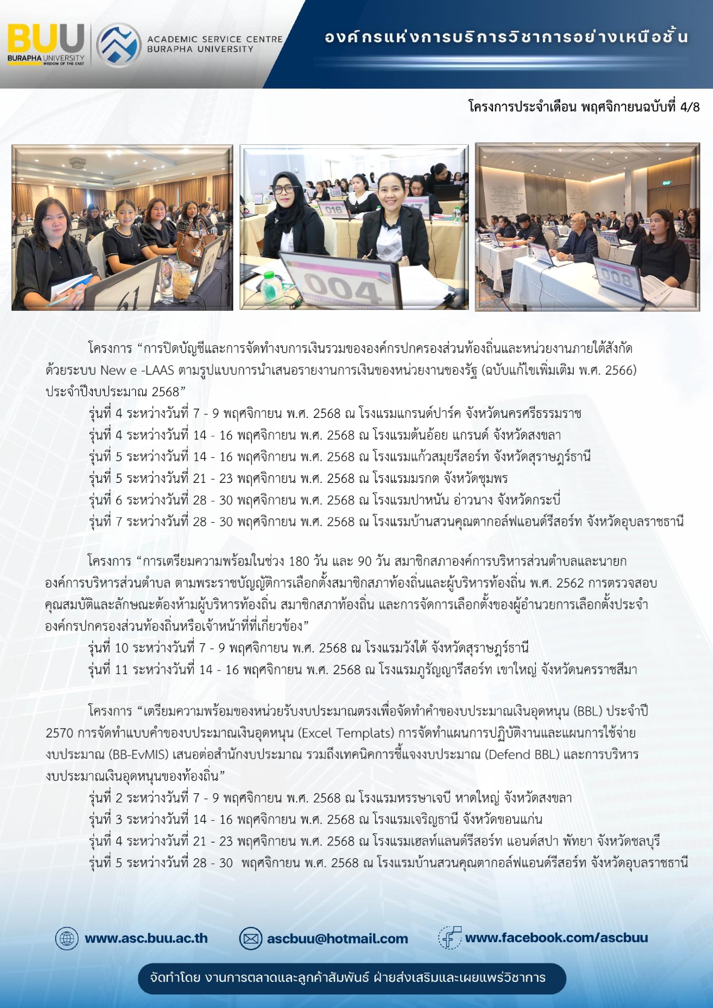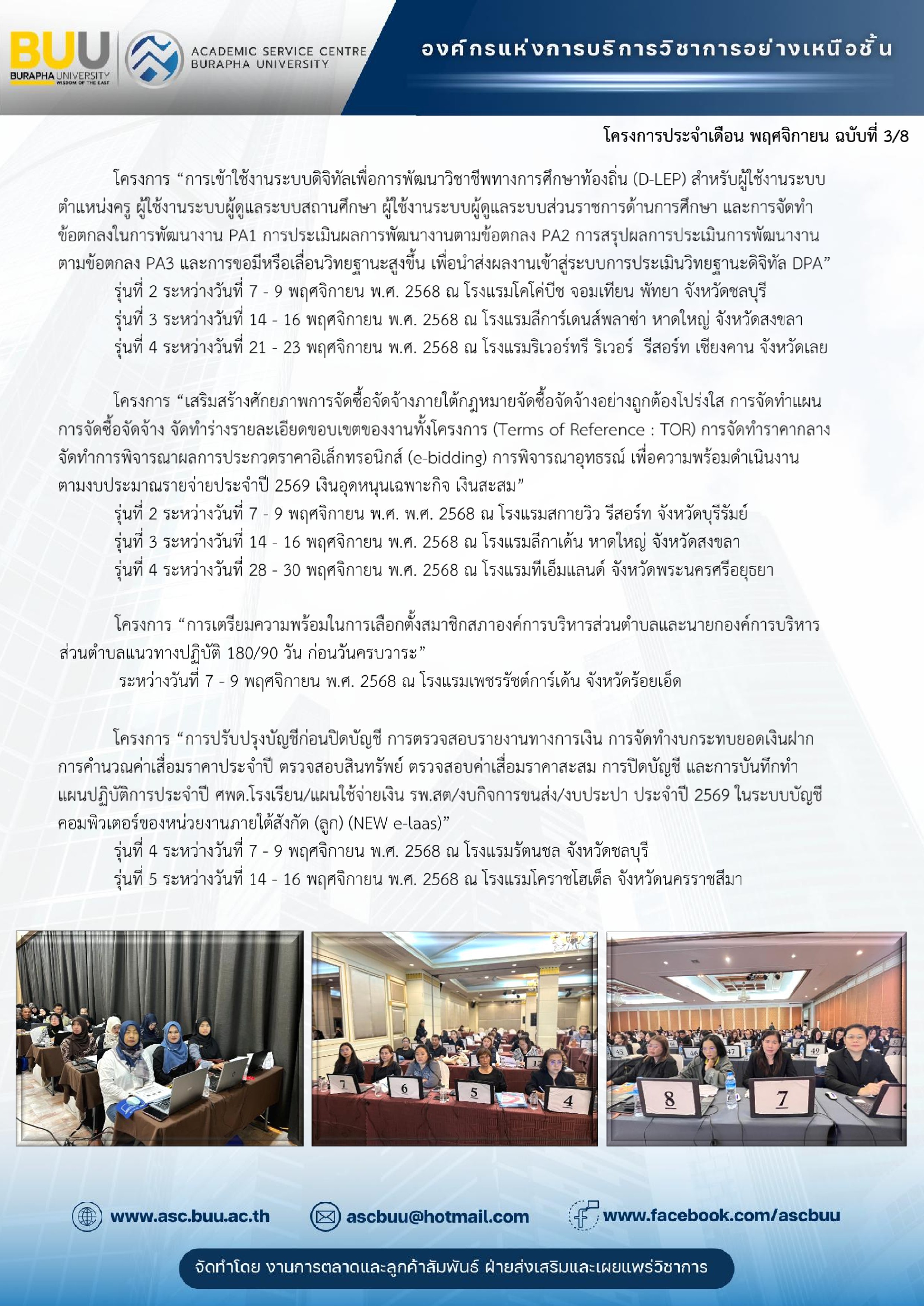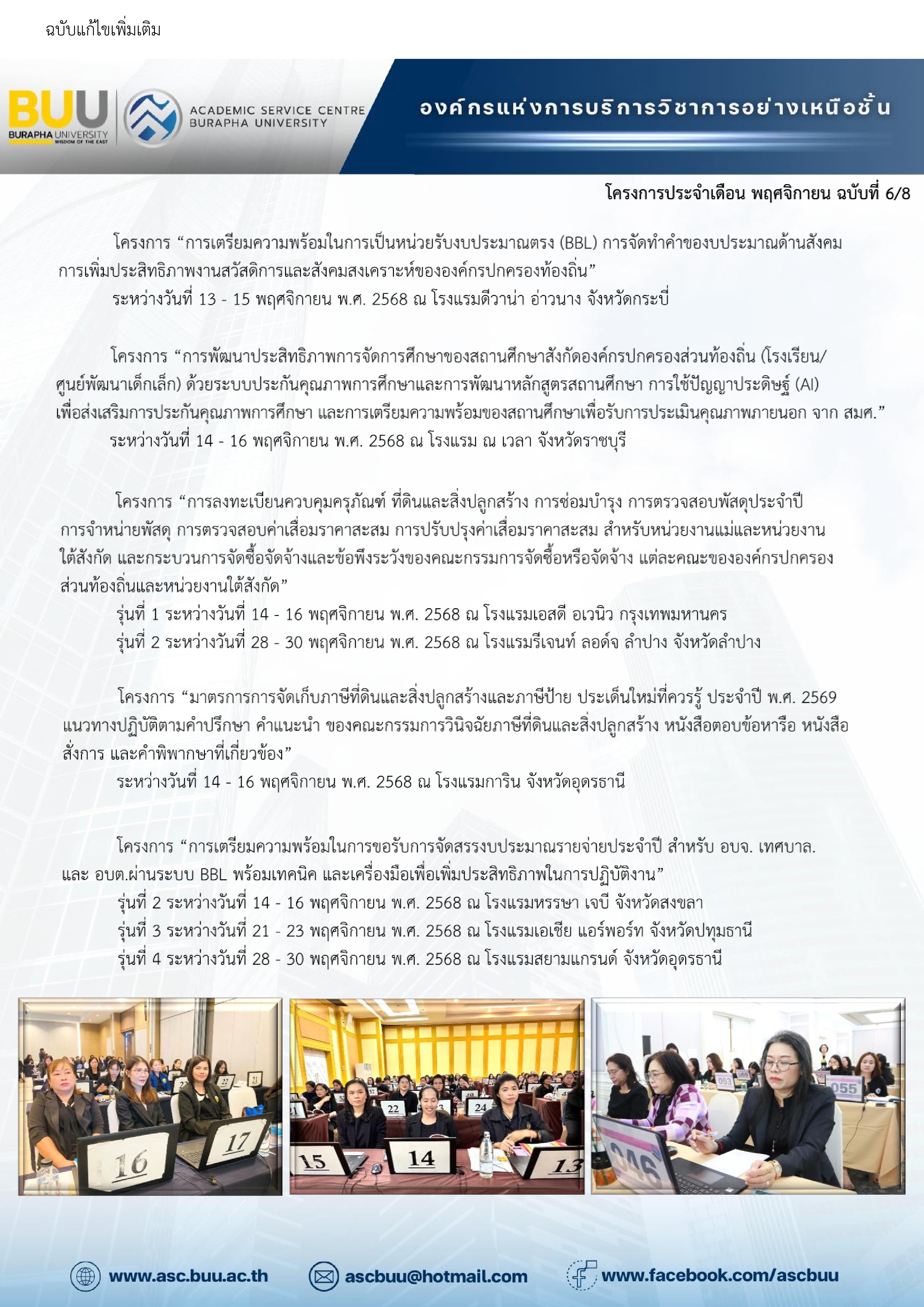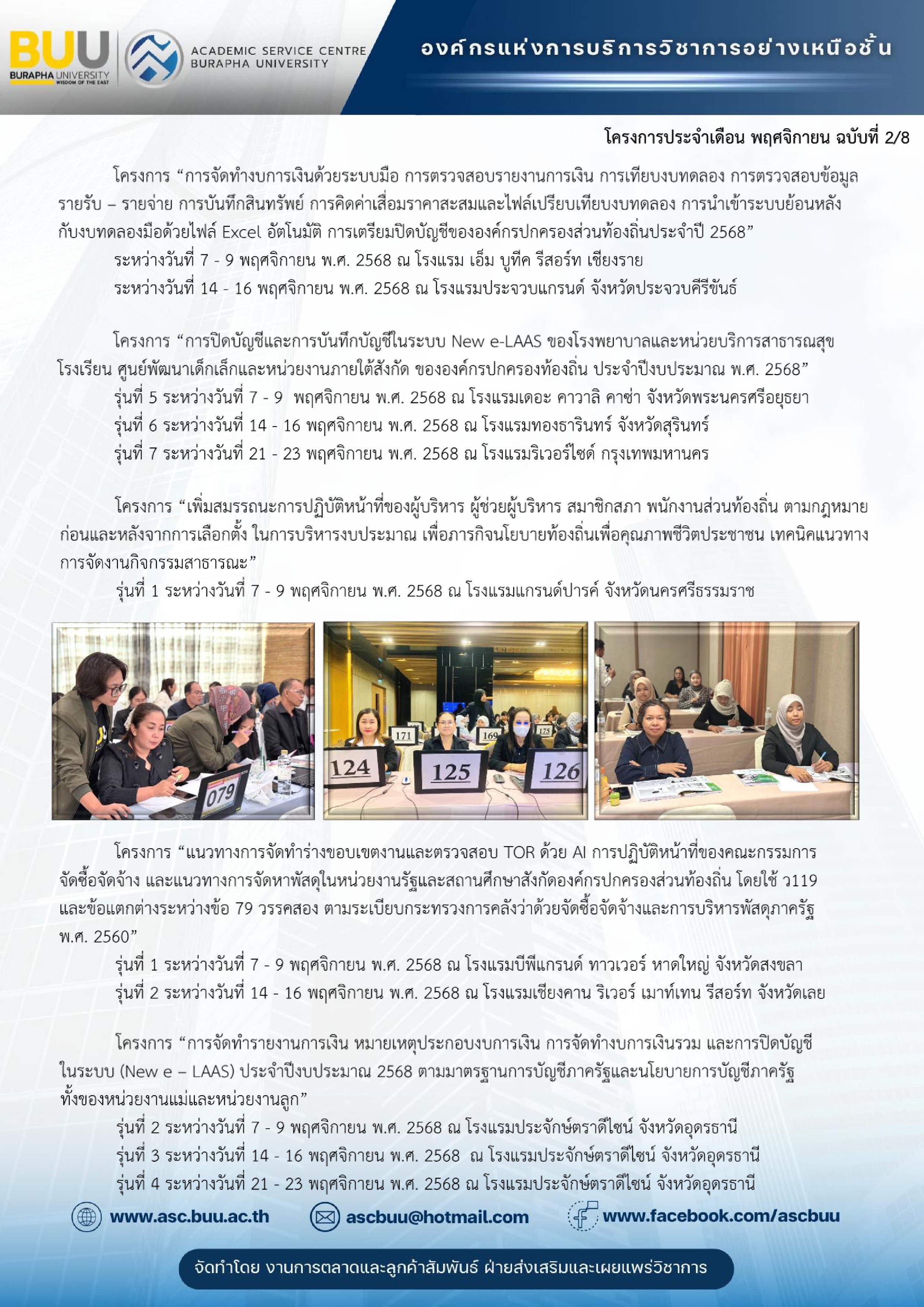 โครงการบริการวิชาการ ประจำเดือน พฤศจิกายน 2568 จัดโดย ฝ่ายพัฒนาสังคมและสิ่งแวดล้อม สำนักบริการวิชาการ มหาวิทยาลัยบูรพา