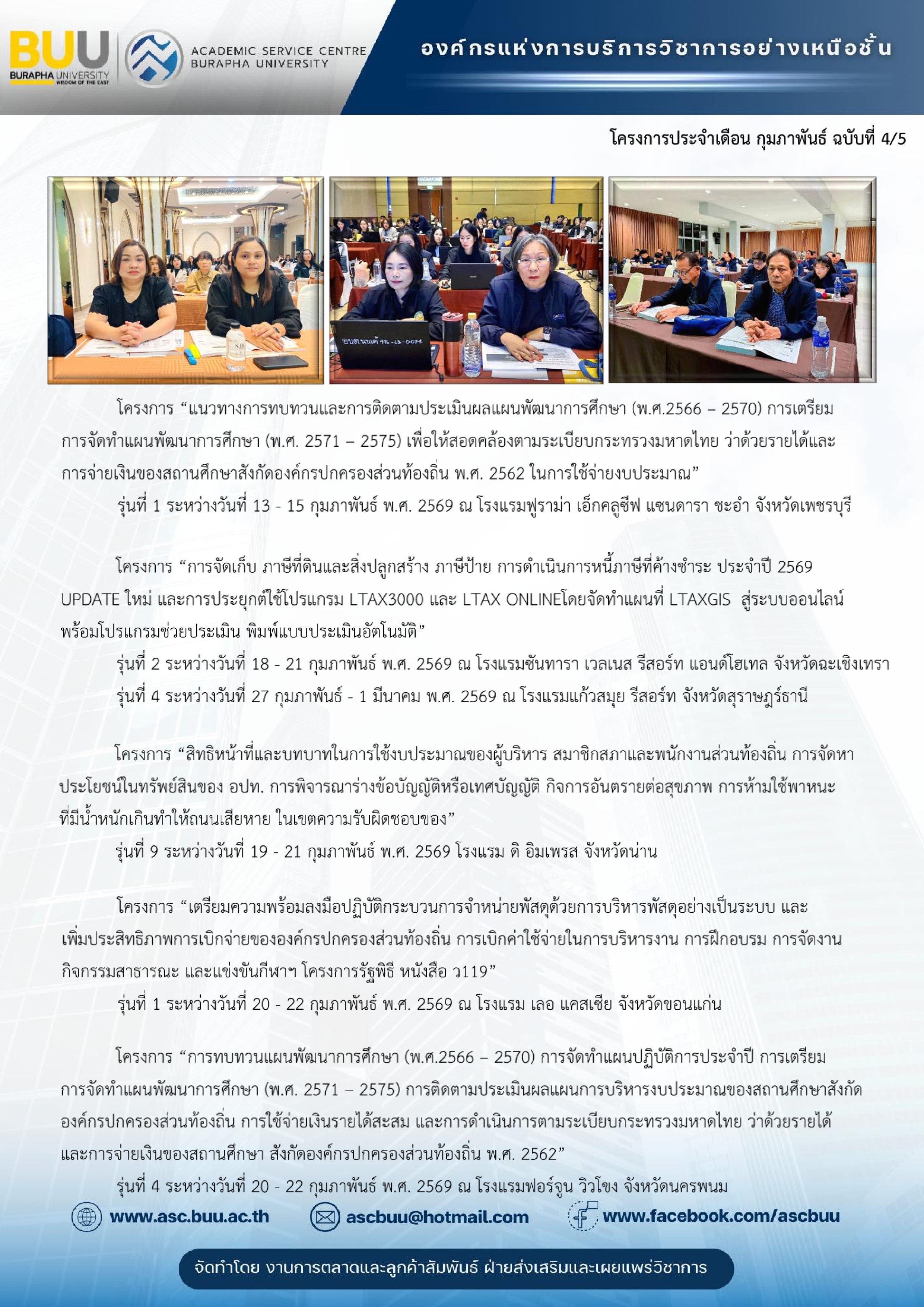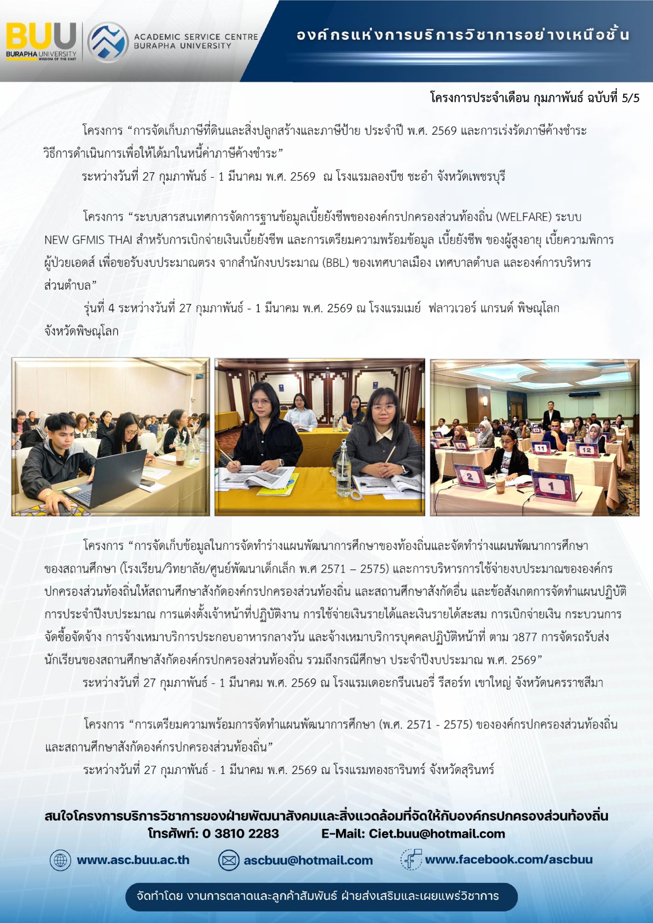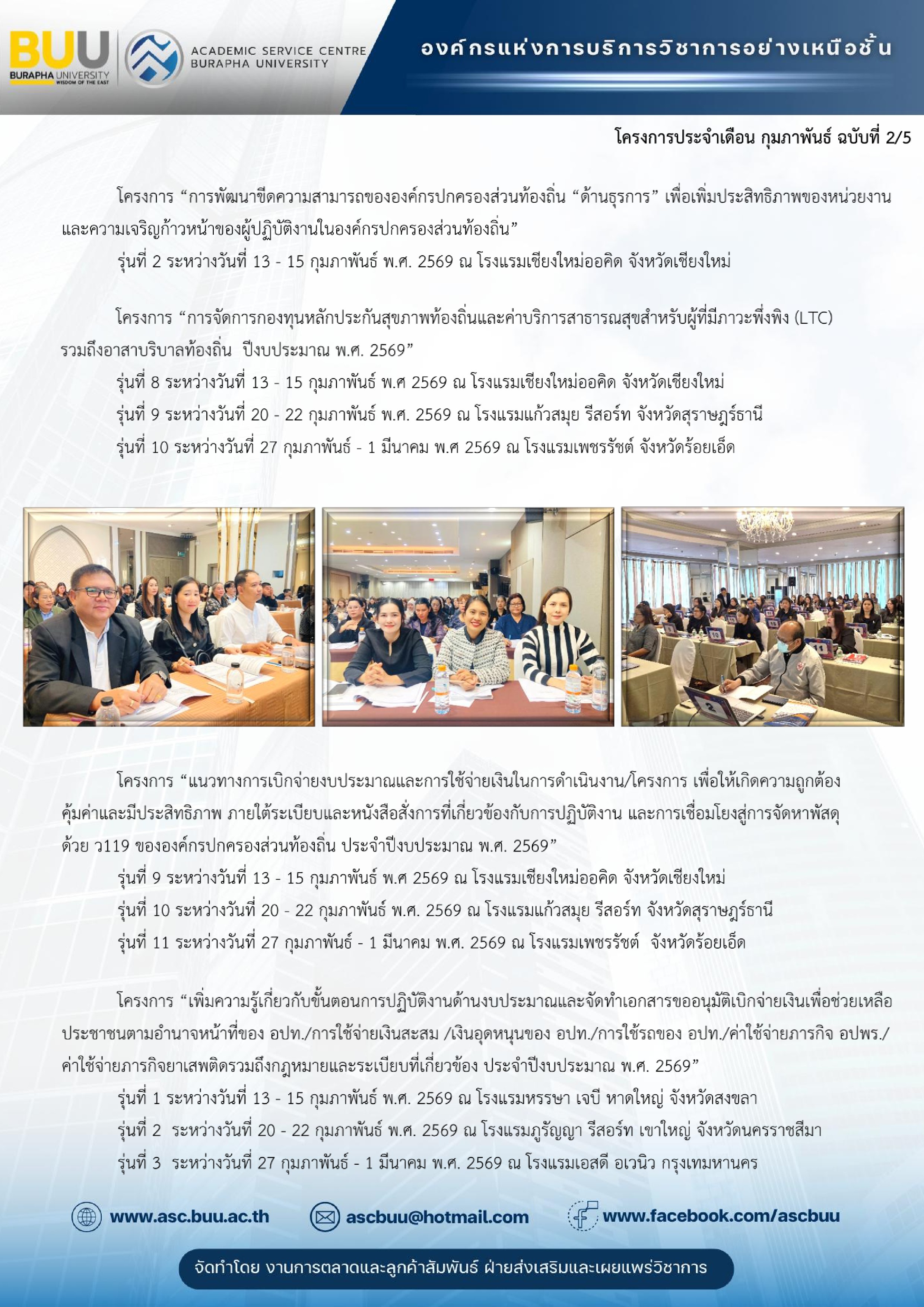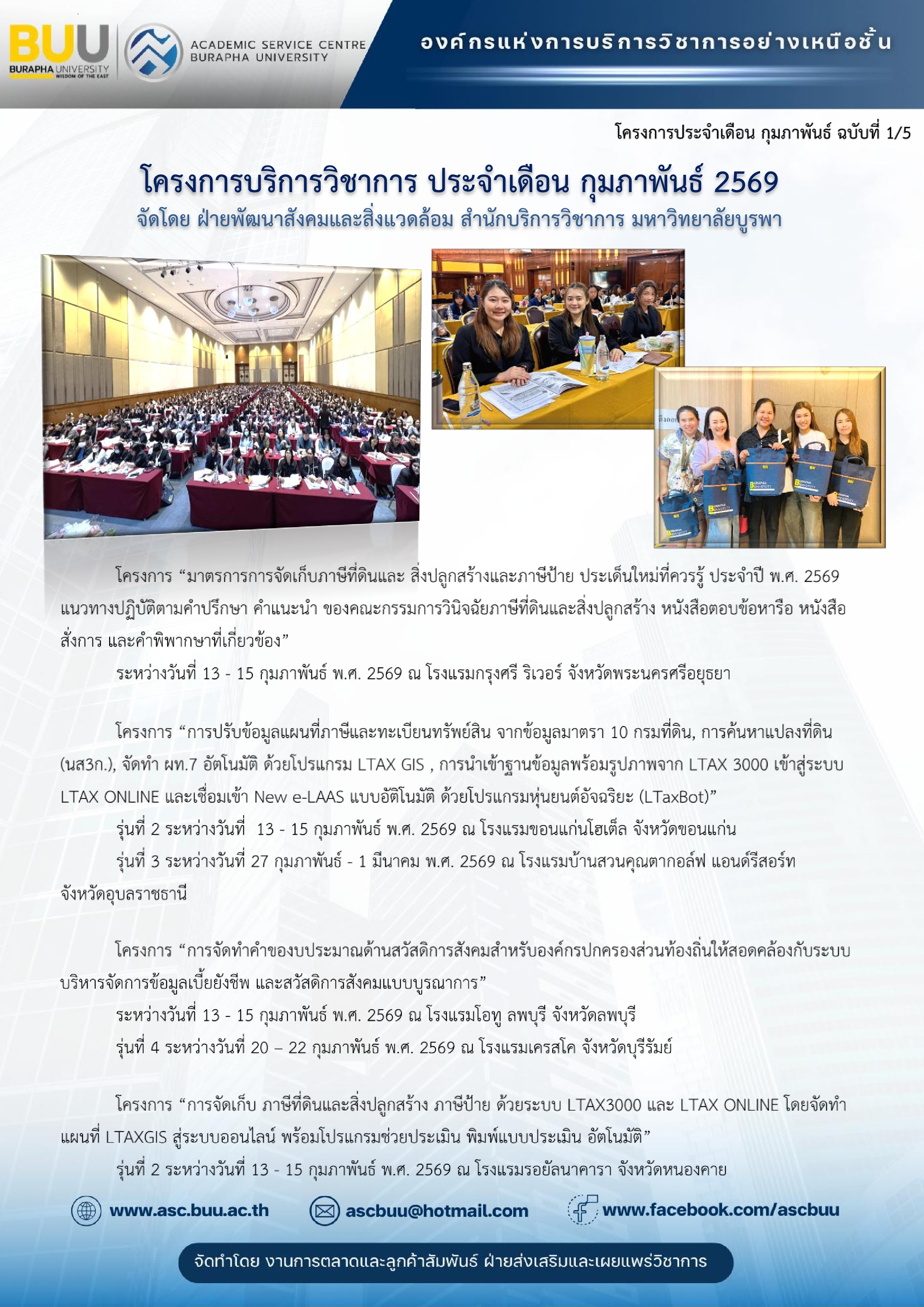 โครงการบริการวิชาการ ประจำเดือน กุมภาพันธ์ 2569 จัดโดย ฝ่ายพัฒนาสังคมและสิ่งแวดล้อม สำนักบริการวิชาการ มหาวิทยาลัยบูรพา