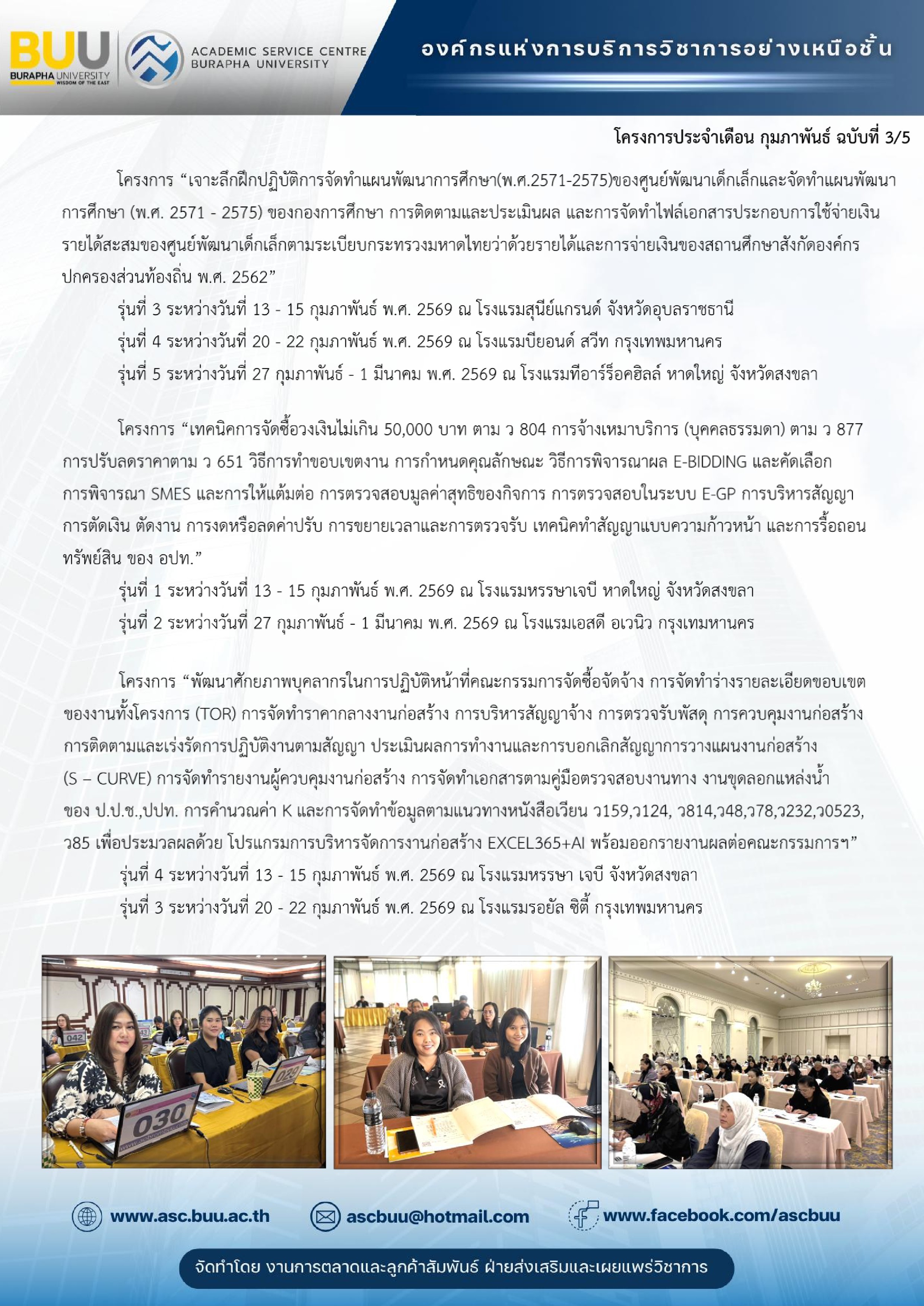 โครงการบริการวิชาการ ประจำเดือน มีนาคม 2569 จัดโดย ฝ่ายฝึกอบรมและที่ปรึกษา สำนักบริการวิชาการ มหาวิทยาลัยบูรพา